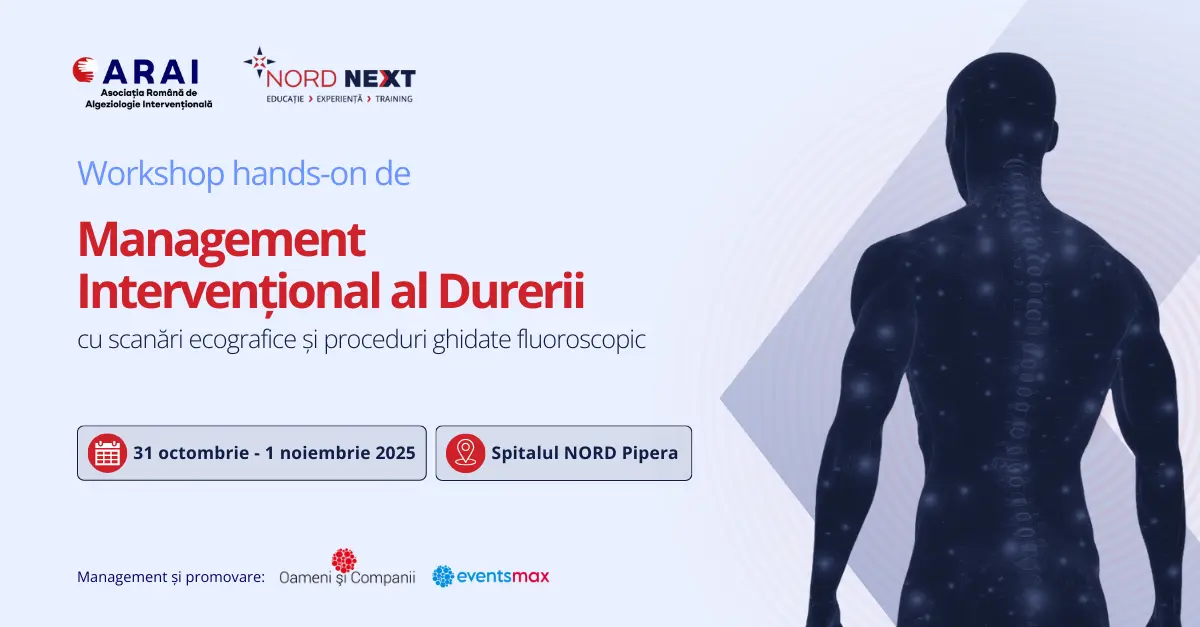 În perioada 31 octombrie – 1 noiembrie 2025, ARAI – Asociația Română de Algeziologie Intervențională organizează Workshopul hands-on de Management Intervențional al Durerii cu scanări ecografice și proceduri ghidate